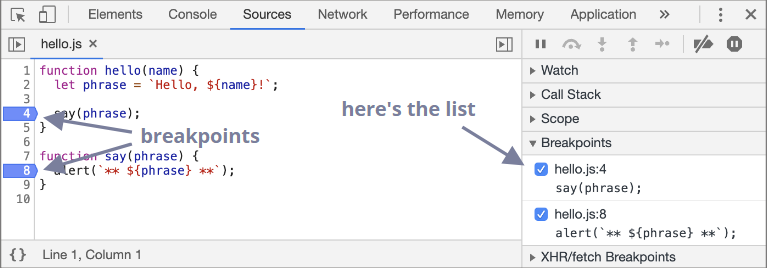 변수와 함수의 매개변수에 특정 값이 들어올 때만 실행을 중단시킬 수 있어 디버깅 시 유용하게 활용할 수 있다.