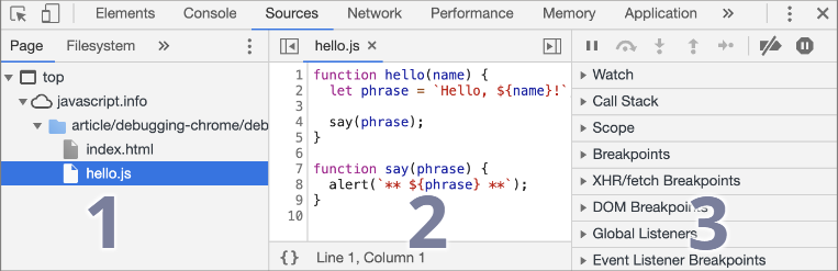 - 1. 파일탐색영역 : 페이지를 구성하는데 쓰인 모든 리소스를 트리 형태로 보여준다.
